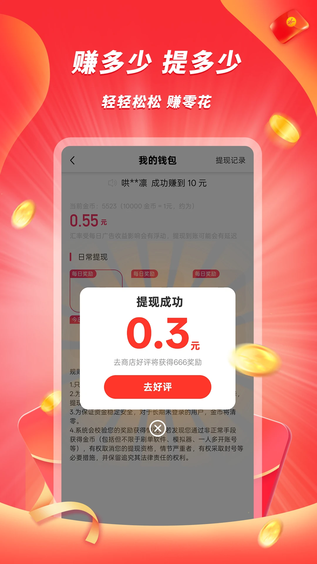 【提现无忧】0.3元即可提现,赚多少能提多少