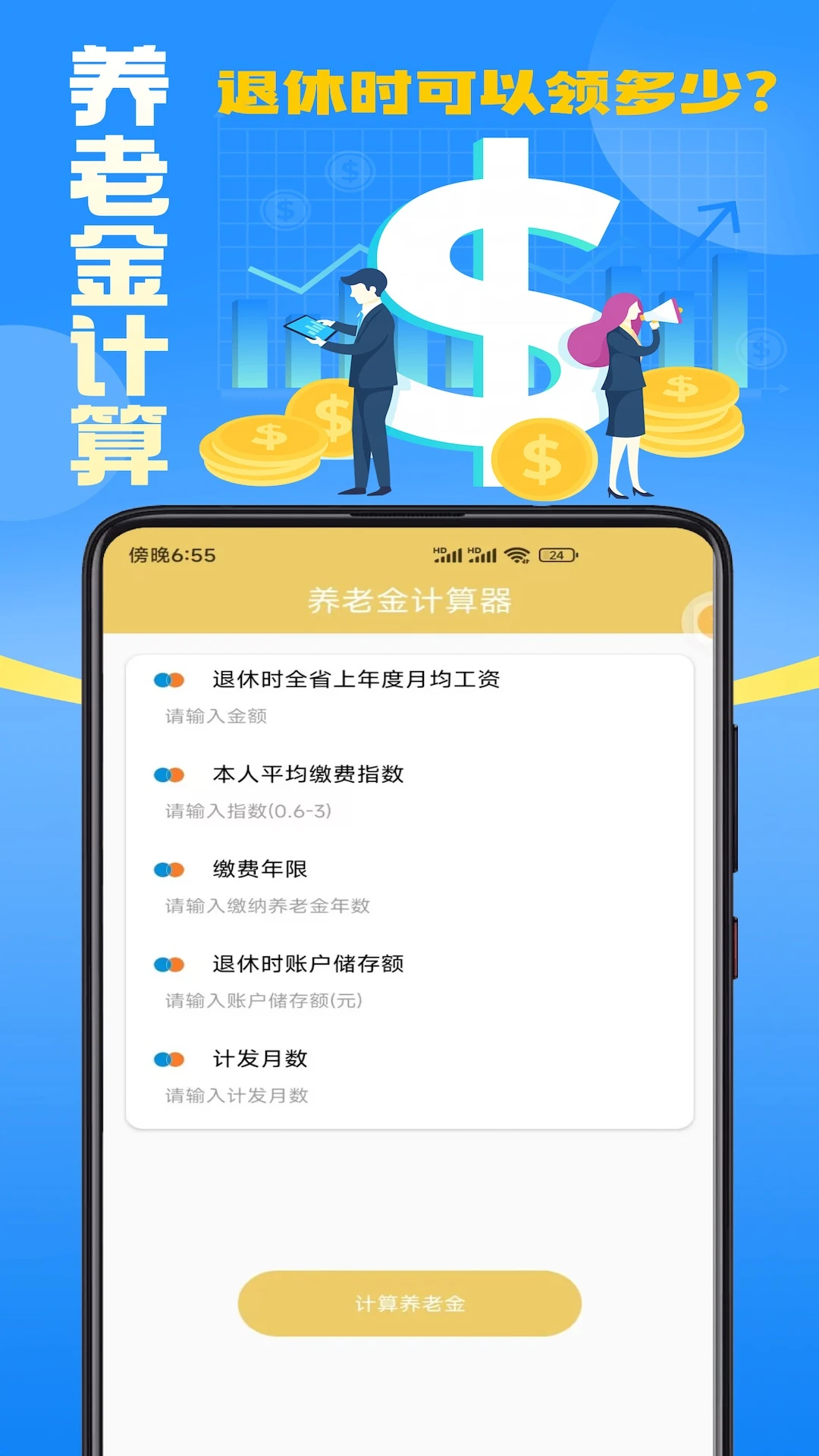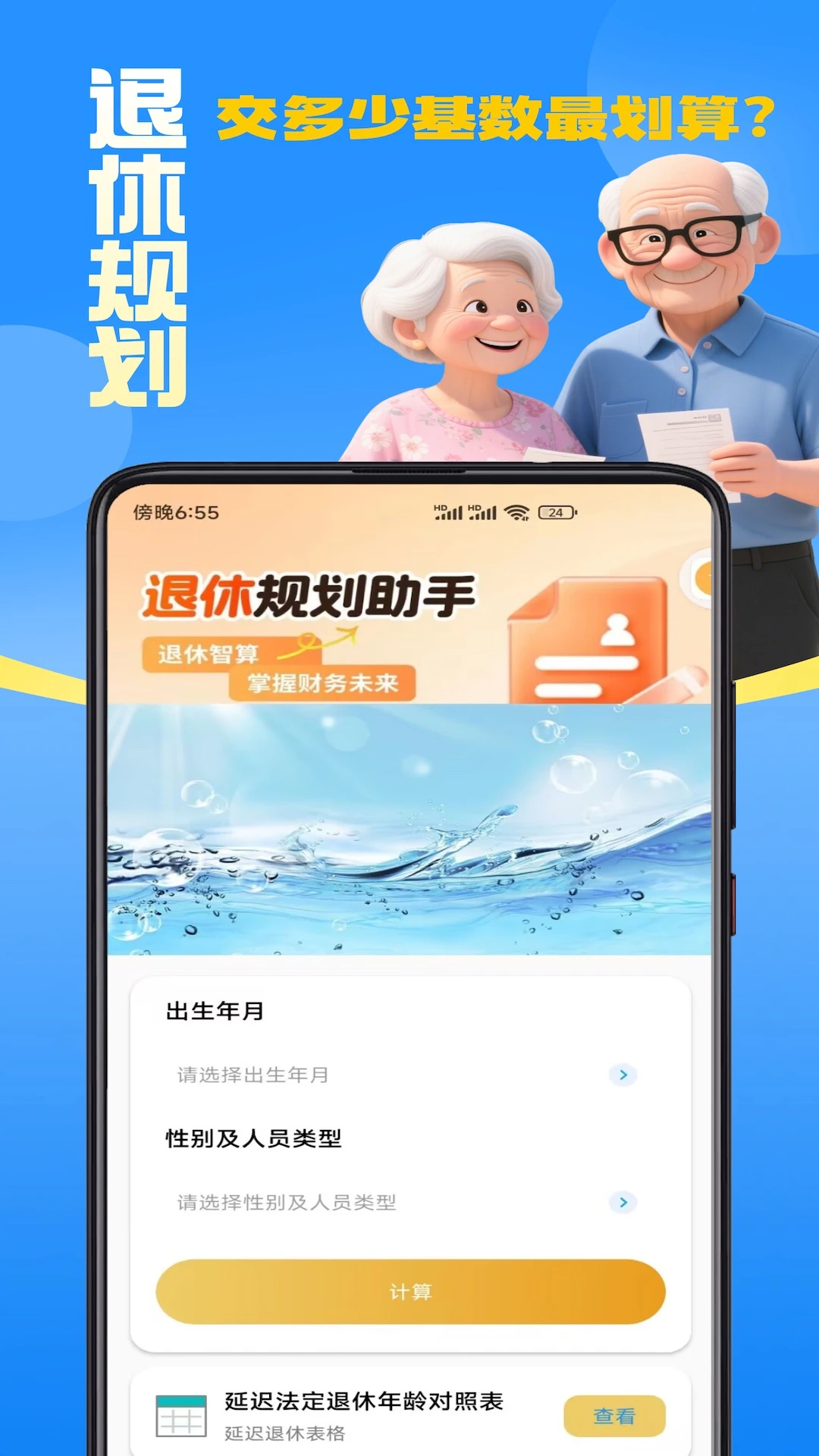 在退休时间计算方面,用户能轻松获取自己的退休日期,以及退休倒计时的天数,为未来的生活做好规划。