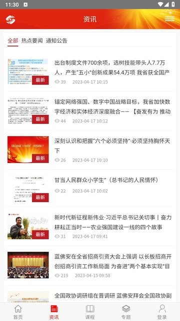 1、下载安装好干部在线山西干部在线学院app后,打开应用即可浏览最新资讯和学习动态。