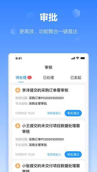 含有强大审核审批功能,不见面,就能轻松实现审核;支持自定义审批流程和电子签名,确保审批合规性