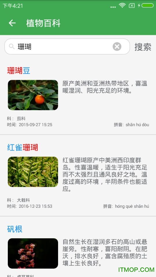 植物是一款专为植物爱好者打造的综合性植物百科软件,致力于为用户提供全面、权威的植物知识库。无论你是专业植物研究者,还是对大自然充满好奇的普通用户,这款软件都能满足你的需求。通过丰富的图文资料、详细的植物分类以及实用的功能设计,植物将成为你探索植物世界的得力助手。目前,该软件已在IT猫扑站上线,欢迎广大用户下载体验!