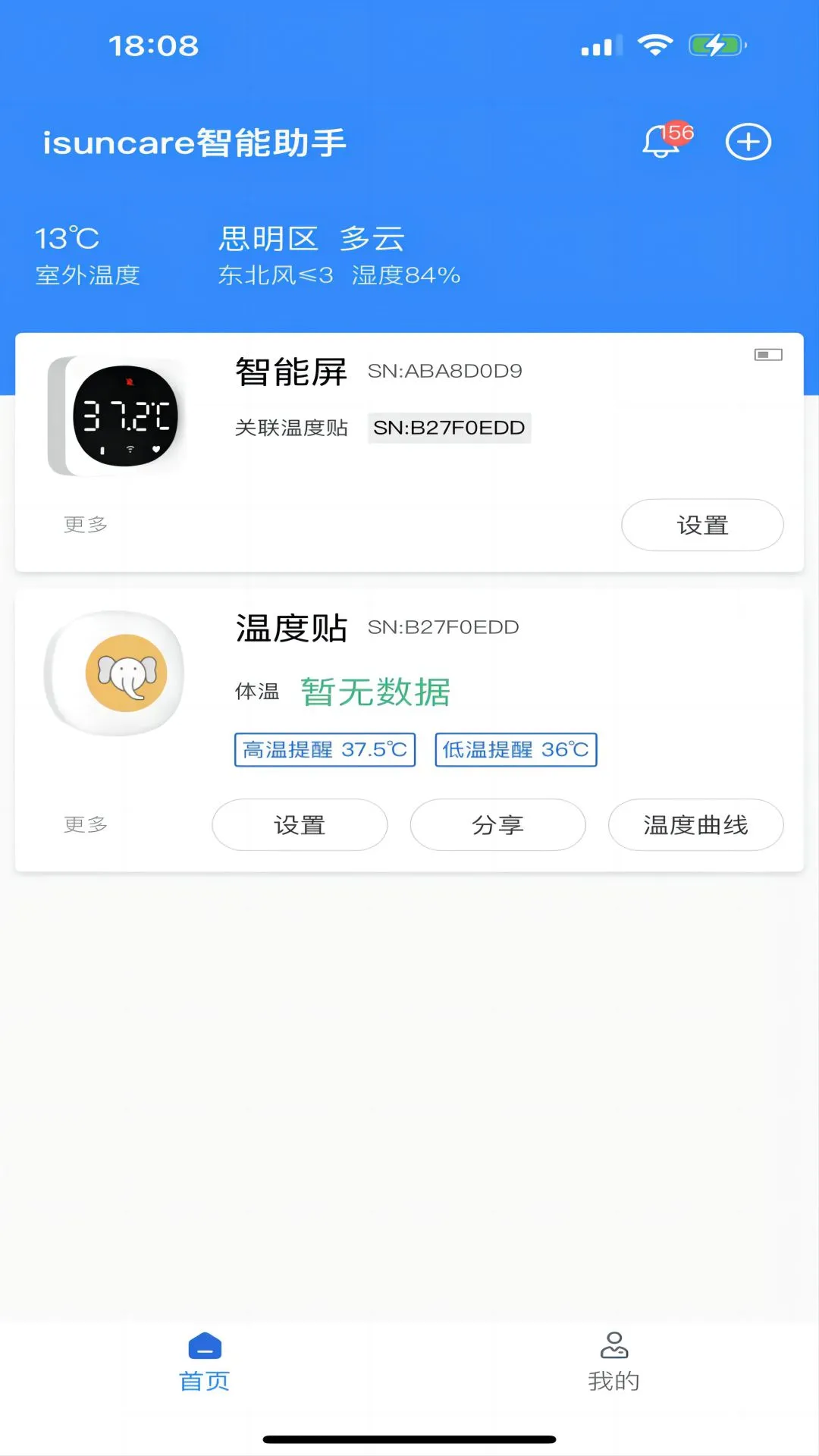 isuncare智能助手搭载智能体温计使用,提供远程管理及云端管理服务。可实时接收并查看数据,实时监测体温变化,并根据设定的阈值报警。支持历史体温数据查看,随时查看近7天体温变化情况。