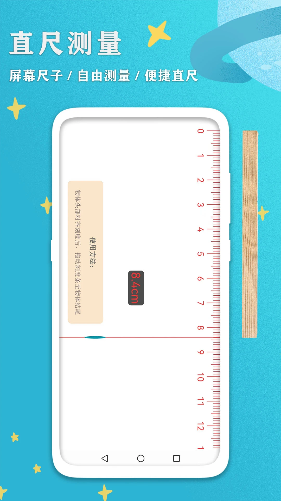 -直尺测量:通过手机分辨率模拟尺子刻度,让手机替代传统直尺,满足您的测量需要;
