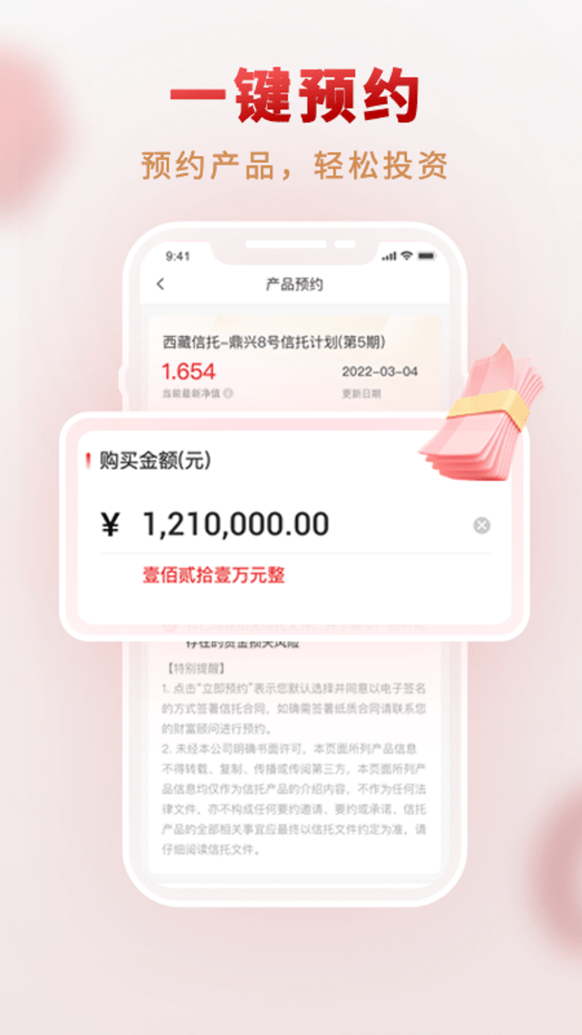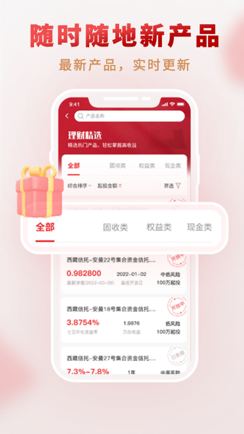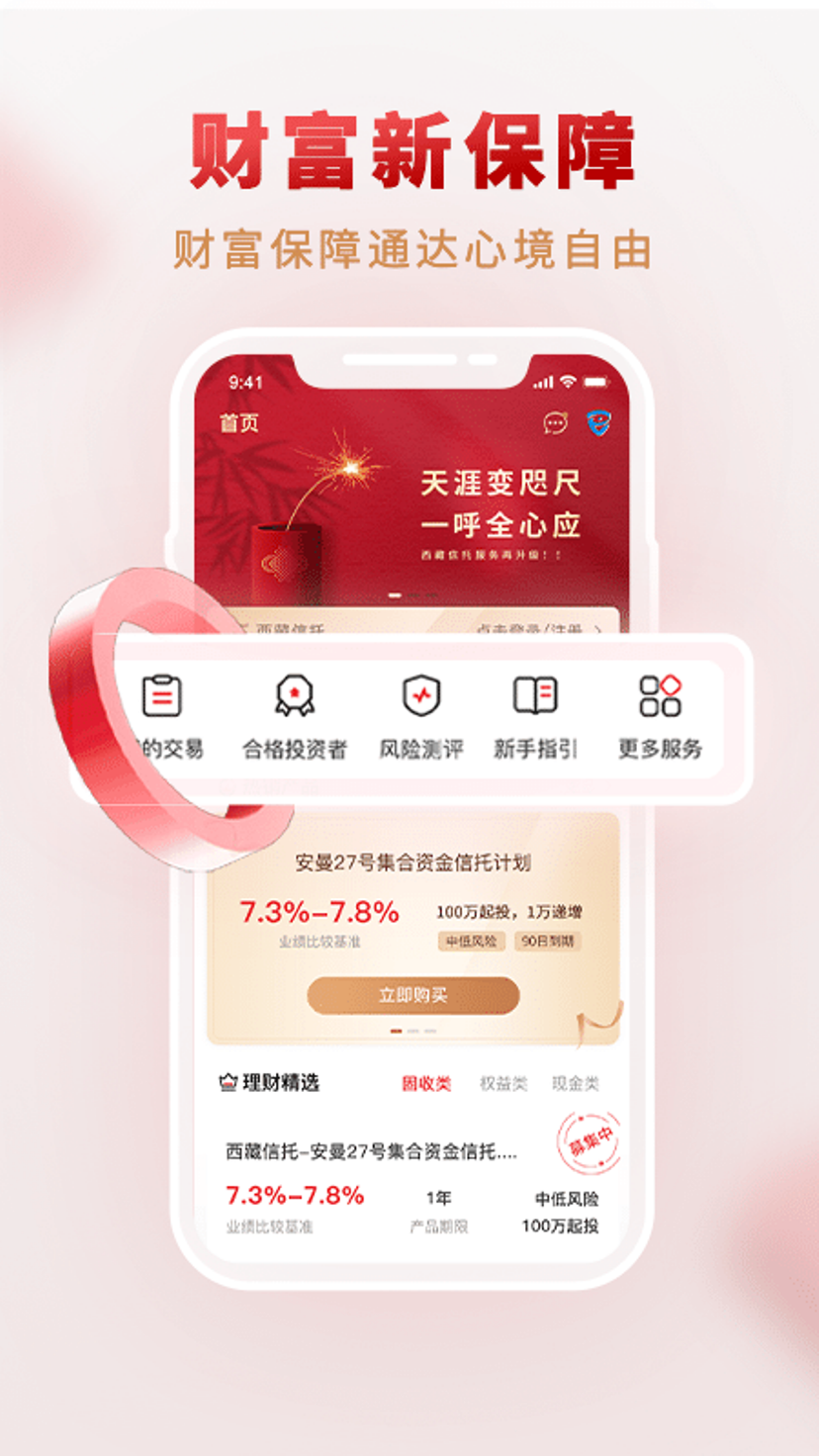 西藏信托财富管理app是我们倾力打造的专业化数字金融服务平台,专为高净值客户提供全方位、智能化、安全可靠的线上财富管理解决方案。该平台集成了多项创新功能,包括但不限于:实时产品查询与智能推荐、线上预约系统、远程双录认证、电子合同签署、个人资产全景视图、信息披露透明化查询等核心服务模块,真正实现了财富管理的数字化、便捷化和个性化。