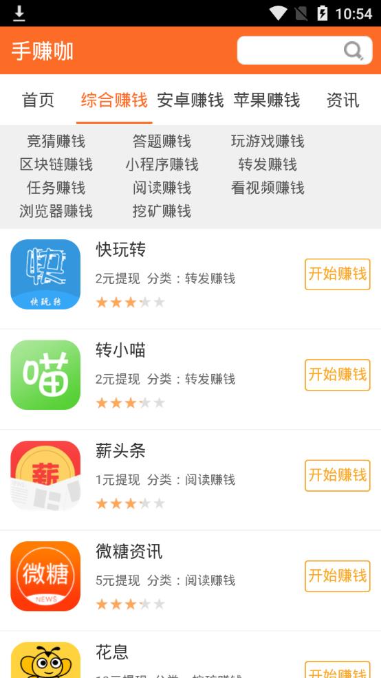 手赚咖app是一款专为希望通过手机轻松赚钱的用户打造的实用工具。作为一款功能强大的聚合平台,它不仅汇集了全网最新最全的手机赚钱资讯,还提供了丰富多样的赚钱软件推荐,让用户能够一站式获取各类赚钱机会。无论是想通过转发内容、试玩应用还是其他方式赚取收益,手赚咖都能满足您的需求。软件界面简洁大方,操作简单便捷,即使是新手也能快速上手。如果您正在寻找一款靠谱的手机赚钱工具,手赚咖绝对是您的不二之选。