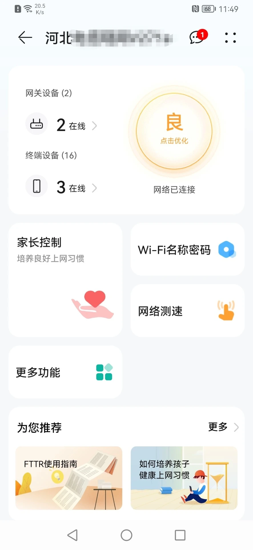智能网络配置:一键完成家庭网络的初始设置,支持Wi-Fi名称、密码自定义,并可实时调整信号强度。