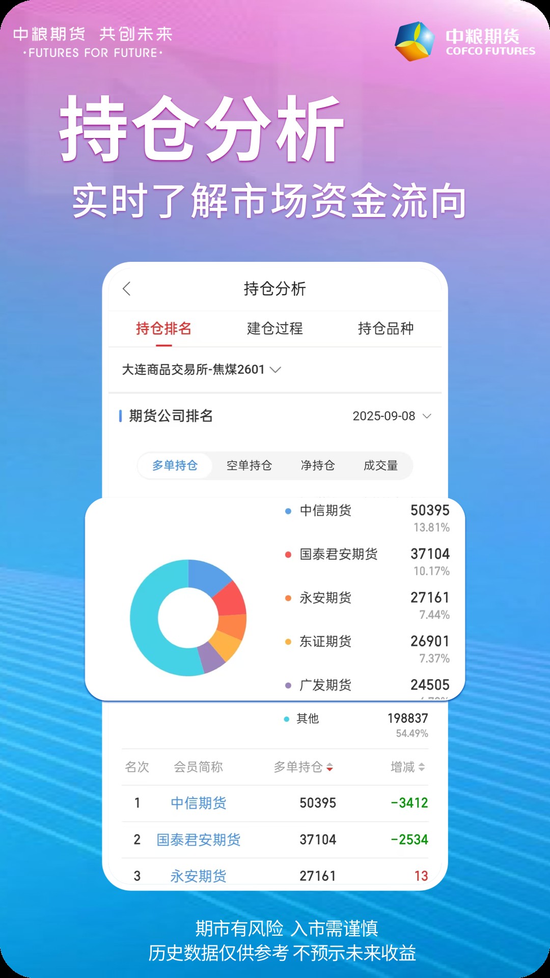 中粮期货交易版是一款专为投资者打造的综合性期货服务平台,免费提供国内各大交易所的实时行情、权威资讯及便捷开户服务。作为中金所、上期所、大商所等主流期货交易所的结算会员,平台依托中粮集团强大的产业背景,为用户提供安全可靠的交易环境。无论是新手还是资深投资者,都能通过直观的界面和丰富的功能,轻松掌握市场动态,实现高效交易决策。