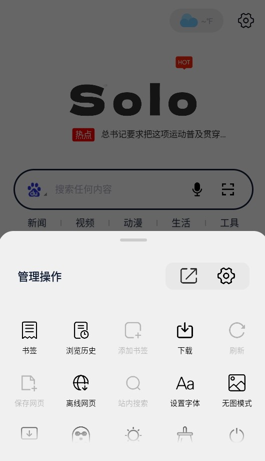Solo浏览器是一款功能强大且操作便捷的移动端浏览器,专为用户提供高效、流畅的网页浏览体验。它不仅具备极速的搜索能力,还能根据用户需求进行个性化设置,让每一次上网都变得更加轻松愉快。无论是日常查询信息、访问常用网站,还是管理收藏夹和历史记录,Solo浏览器都能满足您的需求。此外,它还支持无痕浏览模式,保护您的隐私安全,让您上网无忧。