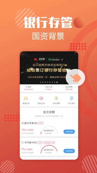 金贝猫app是一款专业可靠的互联网金融理财平台,凭借其安全稳健的投资环境和便捷高效的服务体验,已成为国内领先的移动理财工具。作为专注于票据理财的金融科技平台,金贝猫始终坚持以用户需求为核心,为广大投资者提供多元化的理财选择,让财富增值变得更加简单高效。