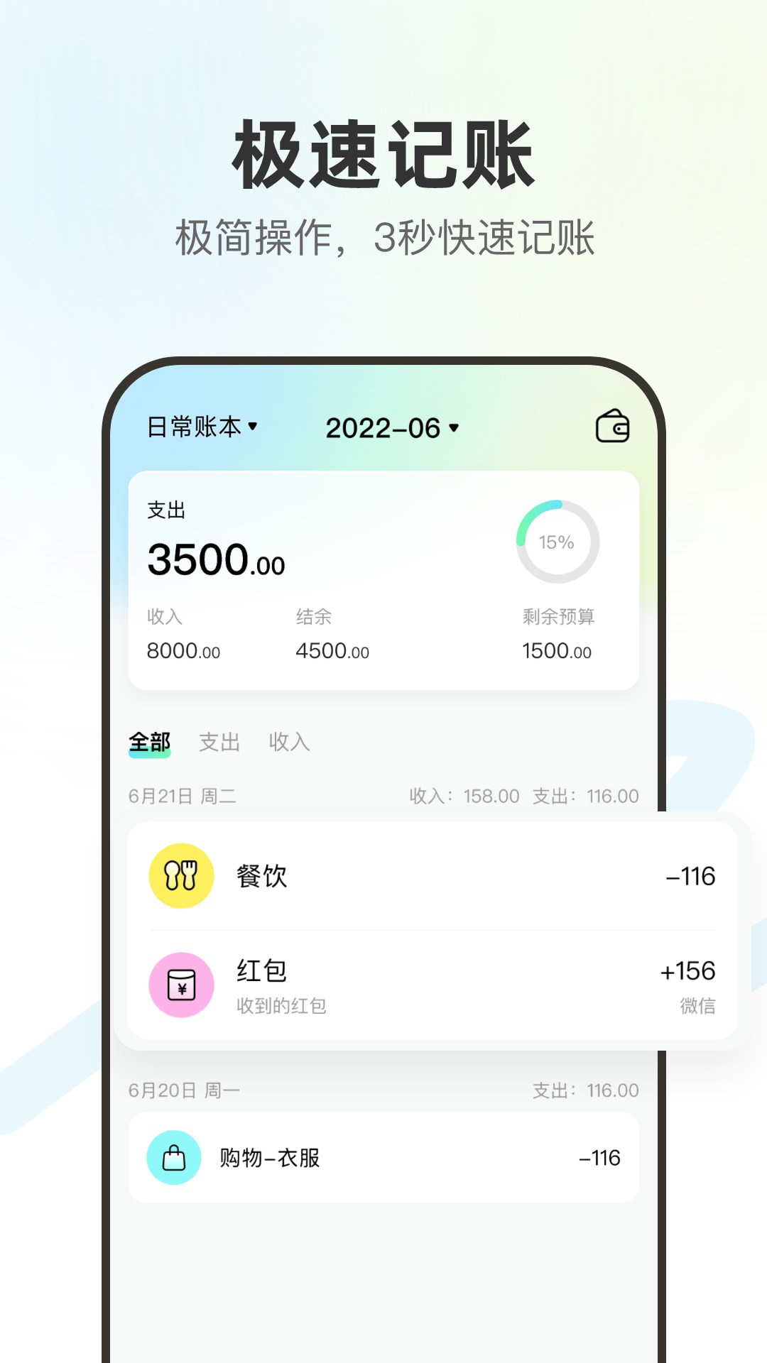 「极速记账」3秒完成一笔记录,支持语音输入、拍照记账等快捷方式,让记账不再成为负担