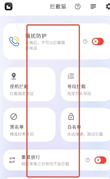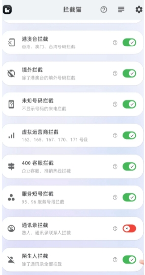 拦截猫正版是一款功能强大的手机骚扰拦截应用,致力于为用户打造纯净的通话环境。这款软件采用智能识别技术,能够精准拦截各类骚扰电话、诈骗信息和广告推销。用户可以根据个人需求自定义拦截规则,支持按号码前缀、地区甚至通话时段进行灵活设置。除了基础拦截功能外,软件还提供骚扰号码标记、拦截记录查询等实用工具,所有操作都能通过简洁直观的界面一键完成,让您的手机彻底摆脱骚扰困扰,享受安全无忧的通讯体验。