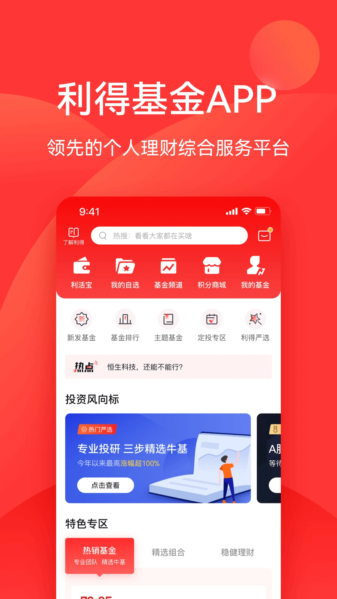 利得基金是一款专注于基金理财的专业平台,致力于为投资者提供权威、全面且高效的理财服务。无论是基金交易、金融资讯,还是行业动态和数据分析,利得基金都能满足用户多样化的投资需求。平台以低费率、多品类、优质服务为核心特色,覆盖公募基金、货币基金、债券基金等多种产品,并提供7*24小时在线客服支持,帮助用户轻松实现财富增值。无论是新手还是资深投资者,都能在利得基金找到适合自己的理财方案。
