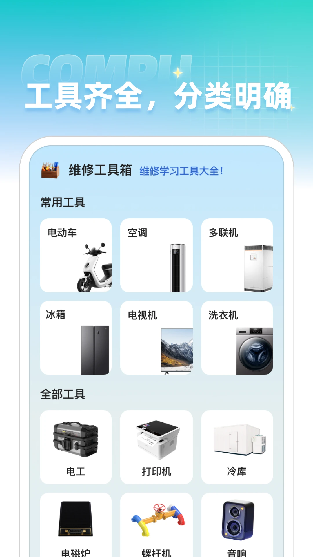 提供18个维修领域的专业指导,覆盖电工、家电、电梯等多个行业