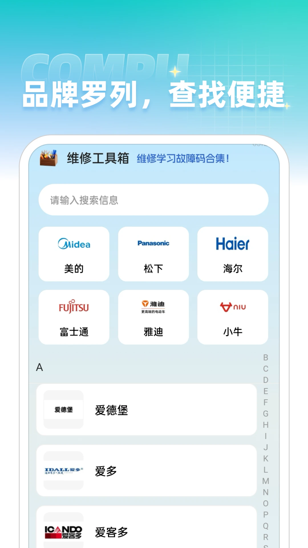 「维修手册大全」是维修人员的实用助手,包含电工、家电、电梯等18个常见维修领域。我们为您提供:详细的故障现象说明,适用设备信息参考,维修方案指导建议,常见故障代码查询,从日常家电到专业设备,为您提供实用的维修参考,让维修工作更加得心应手。