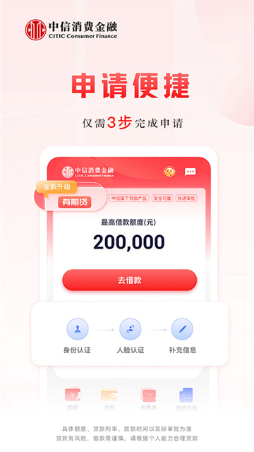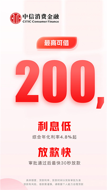 中信消费金融App是由中国中信有限公司、中信信托有限责任公司及金蝶软件(中国)有限公司联合打造的持牌消费金融服务平台。作为正规金融机构推出的产品,该App致力于为个人用户提供便捷、安全的小额消费信贷解决方案。通过数字化技术赋能金融服务,用户可享受从申请到放款的全流程线上操作,最高可获20万元授信额度。平台严格遵循监管要求,利率透明合规,年化利率区间为4.8%-23.99%,并提供多样化的还款渠道选择,满足不同消费场景下的资金需求。