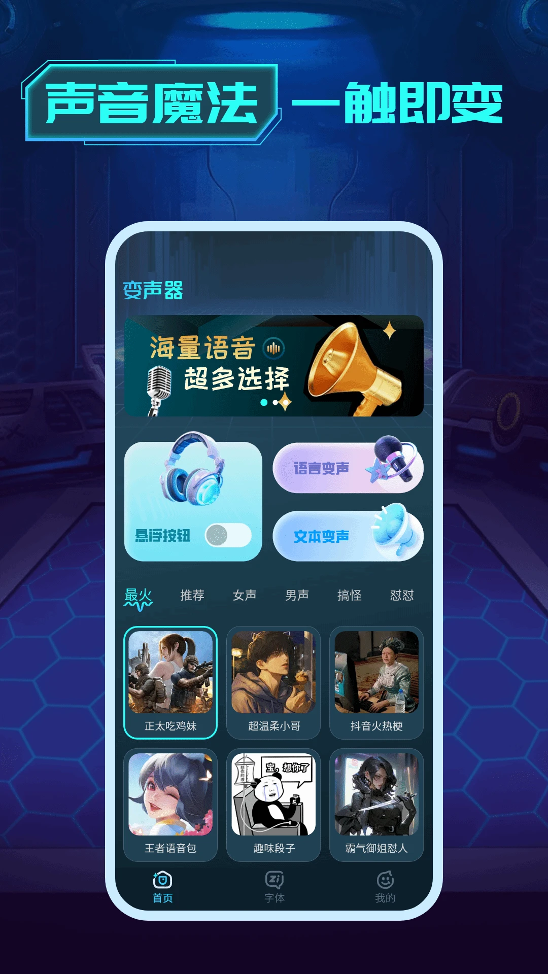 这是一款专注于语音包变声的创新应用,为用户提供了一个全新的音频娱乐和创意制作平台。无论是想要在社交媒体上分享搞笑语音包,还是需要为视频制作独特的旁白,它都能满足您的需求。