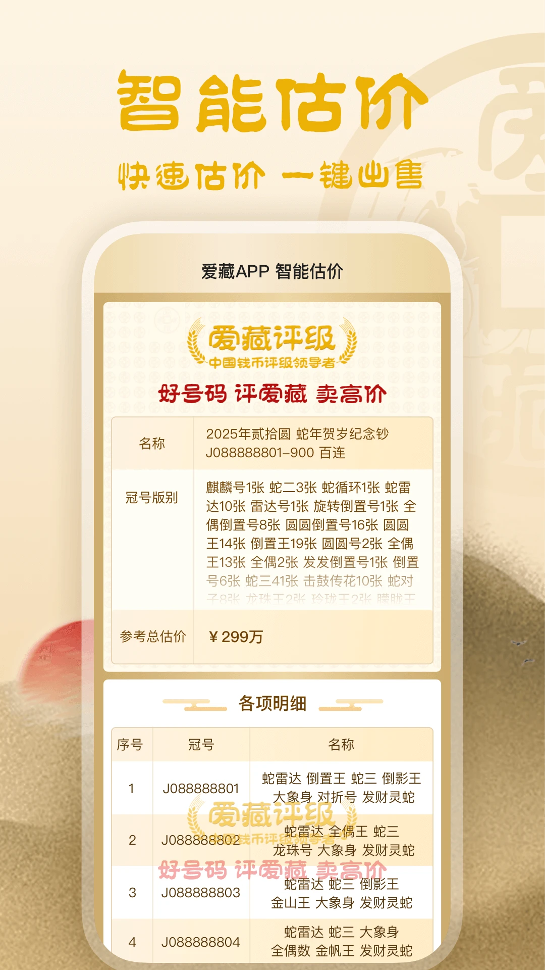 独家钱币DNA档案系统,为每枚评级钱币建立专属数字身份证,扫码即可查看完整流转记录。