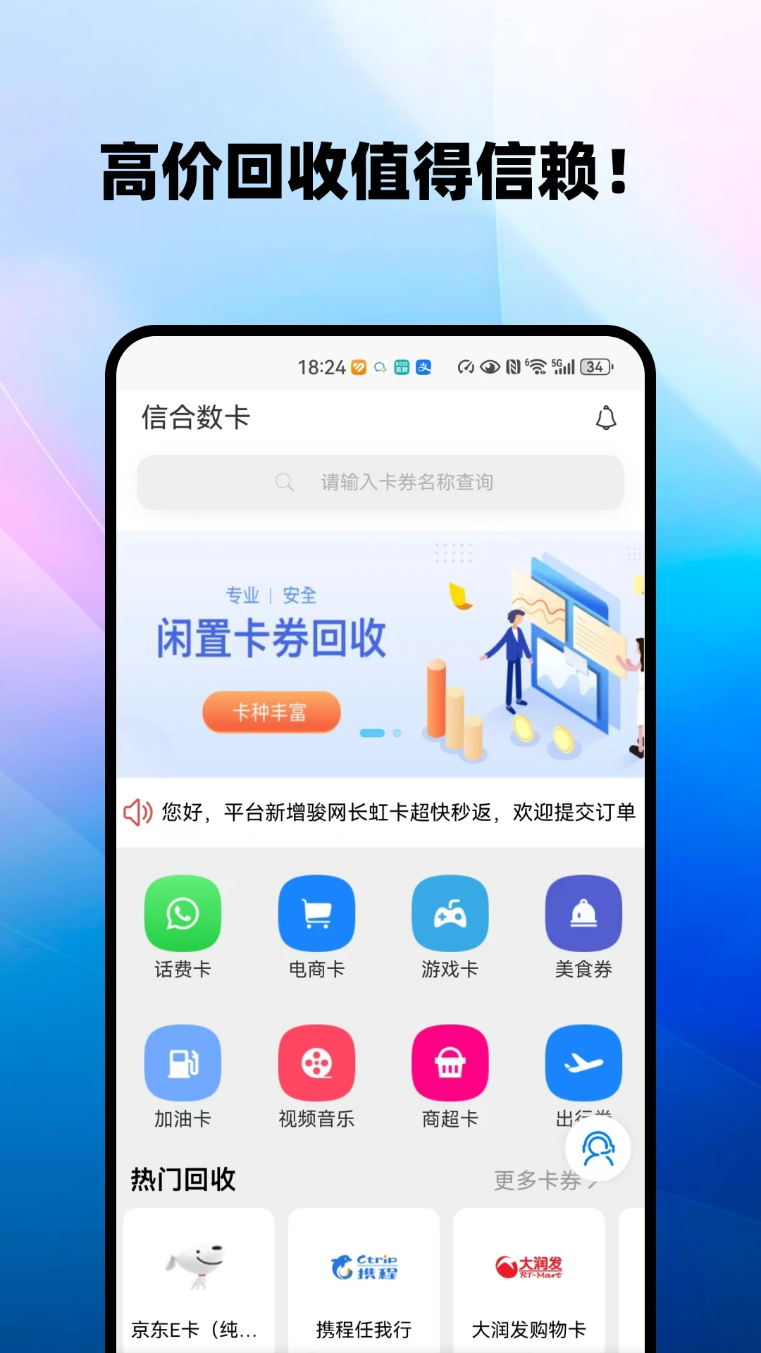 信合数卡回收平台是一款高效便捷的线上卡片回收工具,专注于为用户提供快速、安全、高价的卡片回收服务。无论是话费卡、充值卡、加油卡,还是游戏点卡、购物卡、骑行券、餐饮券等,平台均能在10秒内完成验卡并给出合理报价。其业务范围广泛,涵盖中石化、中石油等知名品牌加油卡回收,以及影音卡兑换等多样化服务。信合数卡回收平台以专业的技术和诚信的服务赢得了用户的信赖,成为众多用户处理闲置卡片的首选平台。