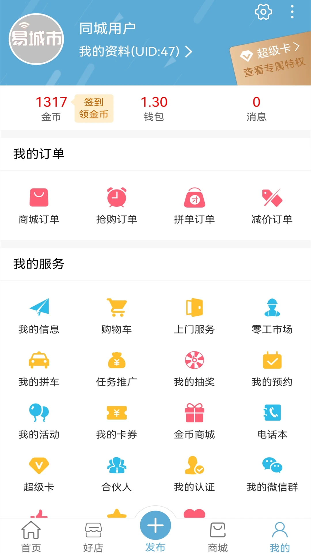 易城市是一款本地生活服务平台,在这里您可以预约用餐,抢购同城优惠商品,订购家政服务,参与同城活动,发布和查询本地信息。你的城市有的,这里都有,快来体验吧~