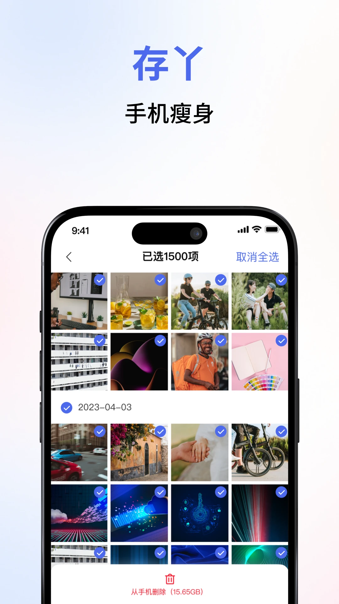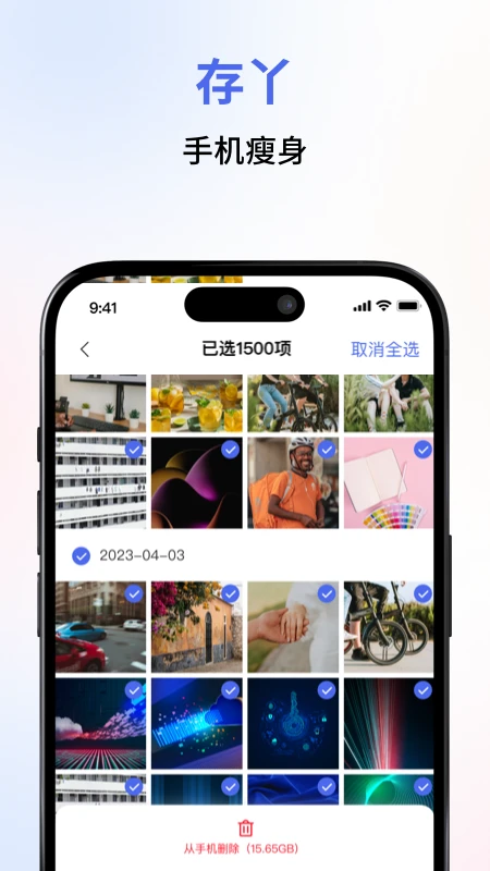 自动识别重复/低质量照片,支持按时间/类型批量清理,最高可释放80%的手机存储空间