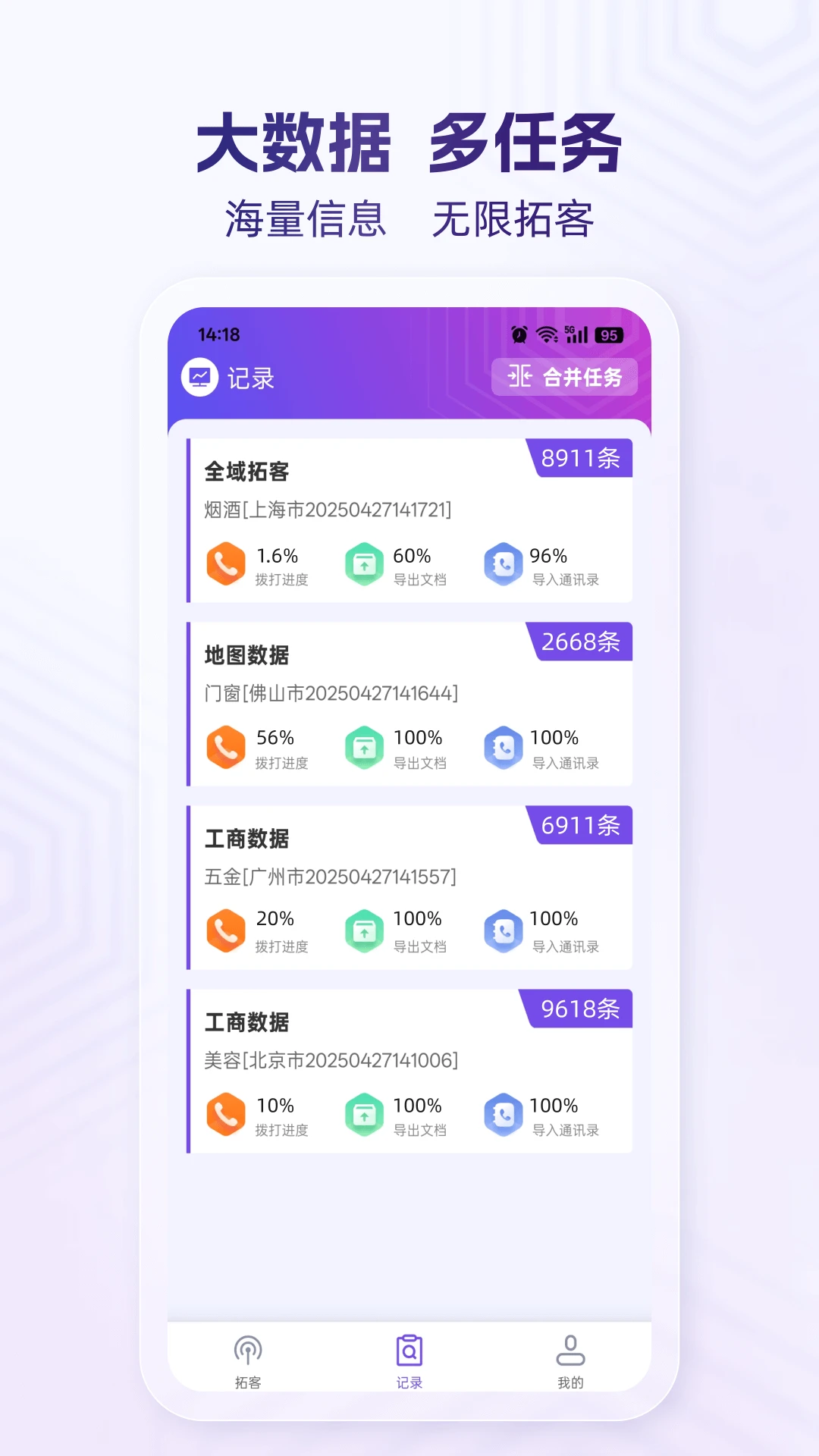 营销拓客、找客户就用拓客云,这是一款专为销售人员、业务员、生产厂家、经销商及渠道商打造的大数据营销获客APP。通过海量客户数据、智能搜索功能和高效联系工具,拓客云帮助用户轻松找到潜在客户、挖掘商机,实现精准营销。无论是工商企业信息、地图数据还是行业商家资源,都能一站式获取,数据实时更新,确保用户始终掌握最新市场动态。从一键拓客到批量操作,拓客云以智能化工具助力销售人员在竞争中抢占先机。
