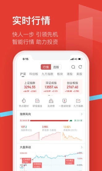 股票行情:除基础行情数据外,独创"资金博弈"分时图可同步显示主力、散户买卖力道;板块监测支持自定义组合对比功能,用户可同时跟踪5个关联板块的联动效应;独家开发的"情绪指标"通过爬取全网财经舆情,量化市场恐慌/贪婪程度。