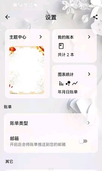 支持自定义主题颜色、字体大小、记账提醒等50多项设置,打造专属记账空间