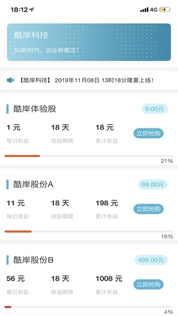 酷岸科技APP是一款基于5G技术的创新赚钱平台,致力于为用户提供多样化的优质赚钱项目。平台采用全球分红模式,让用户轻松参与5G时代的财富机遇。通过严格筛选的项目资源,确保交易安全可靠,提现流程高效便捷。特别值得一提的是,平台还设有邀请奖励机制,邀请好友加入即可获得额外收益,让赚钱变得更加简单高效。无论你是想寻找副业还是创业机会,酷岸科技都能满足你的需求。