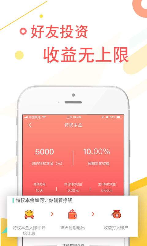 恒泰金服为新手用户准备了丰厚的注册福利,新用户注册即可领取1000元特权本金,立即开始赚取收益。我们的邀请奖励机制让您轻松获得额外收益,邀请好友投资即可享受与好友相同的收益分成,真正做到躺着也能赚钱。平台每日推出加息活动,通过拆福袋方式获得额外加息奖励,最高可达4%的加息幅度。邀请好友参与还能获得更多拆福袋机会,100%获得加息奖励,让您的收益持续攀升。