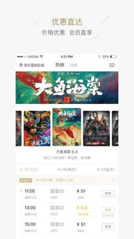 支持客户提前预约订票,热门影片开放预售时会有专属提醒功能,确保粉丝能第一时间抢到首映场黄金座位。会提前进行电影预报,不仅有详细的影片资讯和预告片集锦,还会根据用户喜好推送个性化上映提醒。为客户准备了许多优惠活动,包括学生专属折扣、家庭套票优惠、老带新奖励等多样化促销方案,让不同群体都能享受观影乐趣。