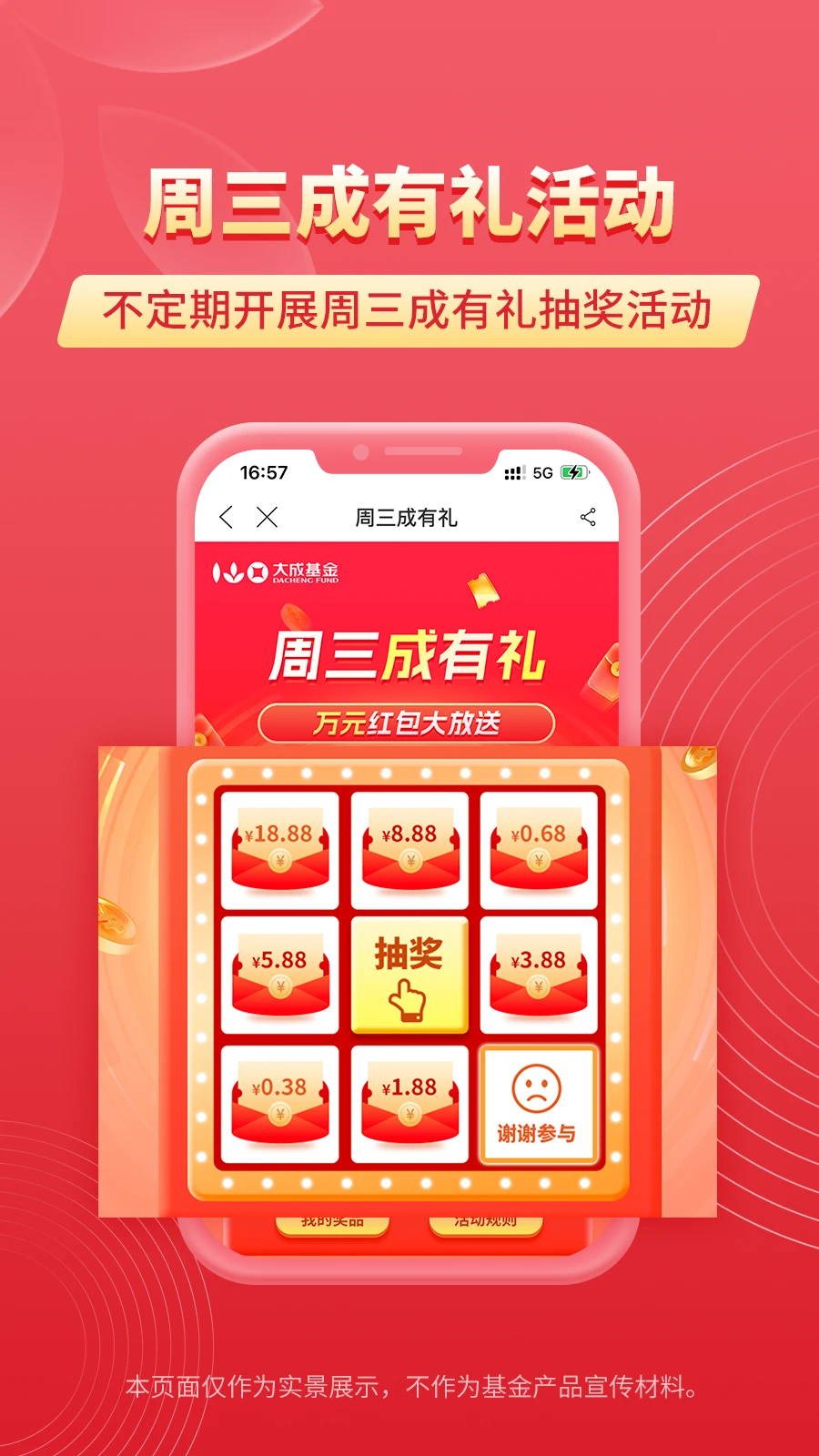 专业团队:大成基金拥有专业的投资团队,为用户提供可靠的理财建议。