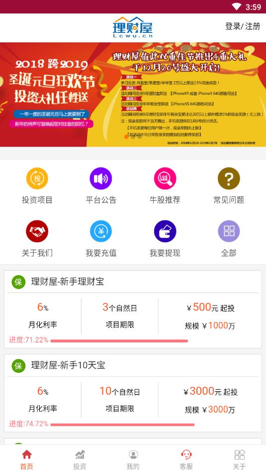理财屋app是一款专业可靠的理财服务平台,致力于为用户提供安全、高效、灵活的财富管理体验。无论您是理财新手还是资深投资者,都能在这里找到适合自己的优质理财产品。理财屋app拥有行业领先的风控体系,所有资金均由银行全程存管,确保每一分钱的安全无忧。