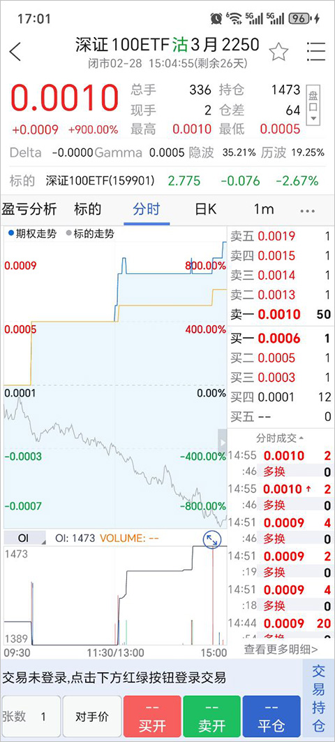 专业K线图表:支持分时图、五日图、日K线等多种图表类型,标的资产走势一目了然。