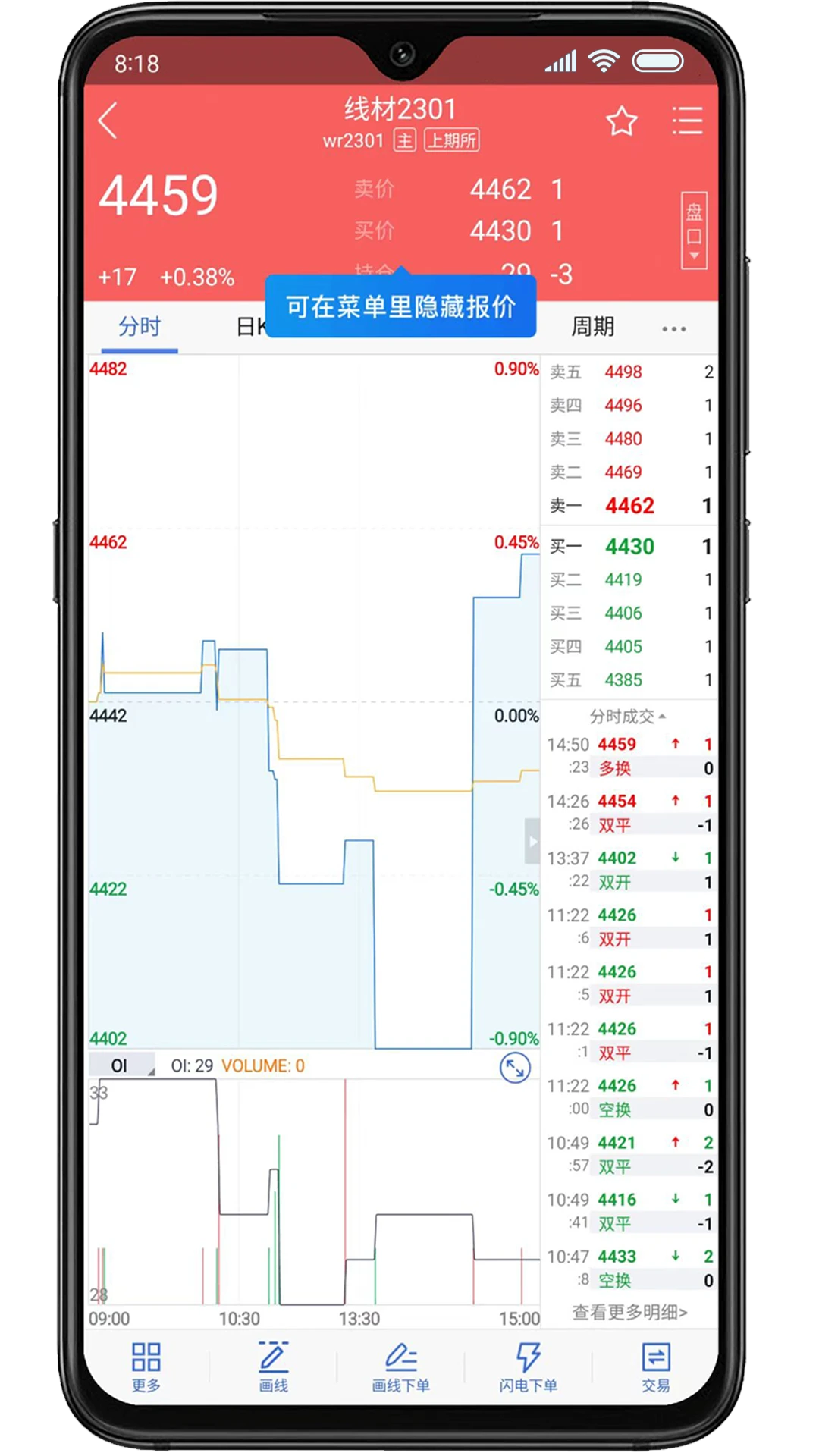 成都交子期货有限公司推出的手机下单软件是一款专为期货投资者打造的高效交易工具。该软件不仅提供国内四家交易所的实时期货行情和权威资讯,还集成了丰富的图表分析功能与常用指标公式,满足专业投资者的多样化需求。用户可通过手机轻松完成开户、交易、资产管理等操作,同时享受财经日历、在线交流、盘面解读等增值服务,是期货交易者不可或缺的移动端助手。