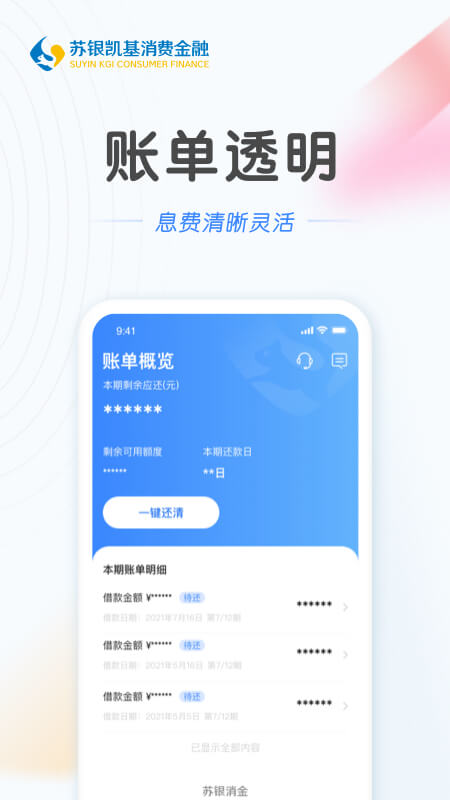 苏银消金,贷动美好生活。平台秉承"金融为民"的服务理念,通过科技创新助力用户实现品质生活。正规持牌,银行控股机构,所有业务均受国家金融监管部门严格监管。操作简单,引领全新体验,极简的UI设计和智能化的流程让贷款变得前所未有的轻松。账单透明,息费清晰灵活,每笔费用都明示展示,绝无隐形收费。轻松借款,简单安全放心,采用多重加密技术确保用户信息和资金安全。