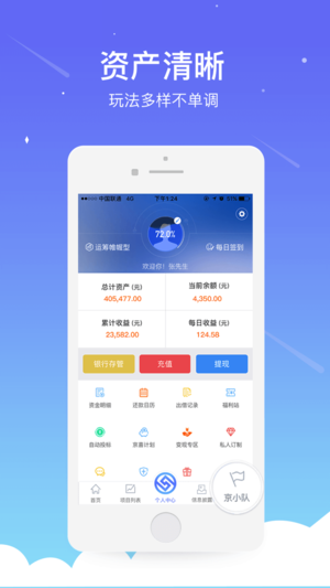 个人中心配备贴心工具箱,用户可以随时查看详细的资金流水、投资记录、已领取福利,还能使用收益计算器进行投资规划。所有数据实时更新,让用户对自己的财务状况一目了然。