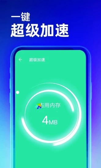 一键超级加速:智能识别后台运行程序,一键清理内存垃圾,让手机运行如飞。