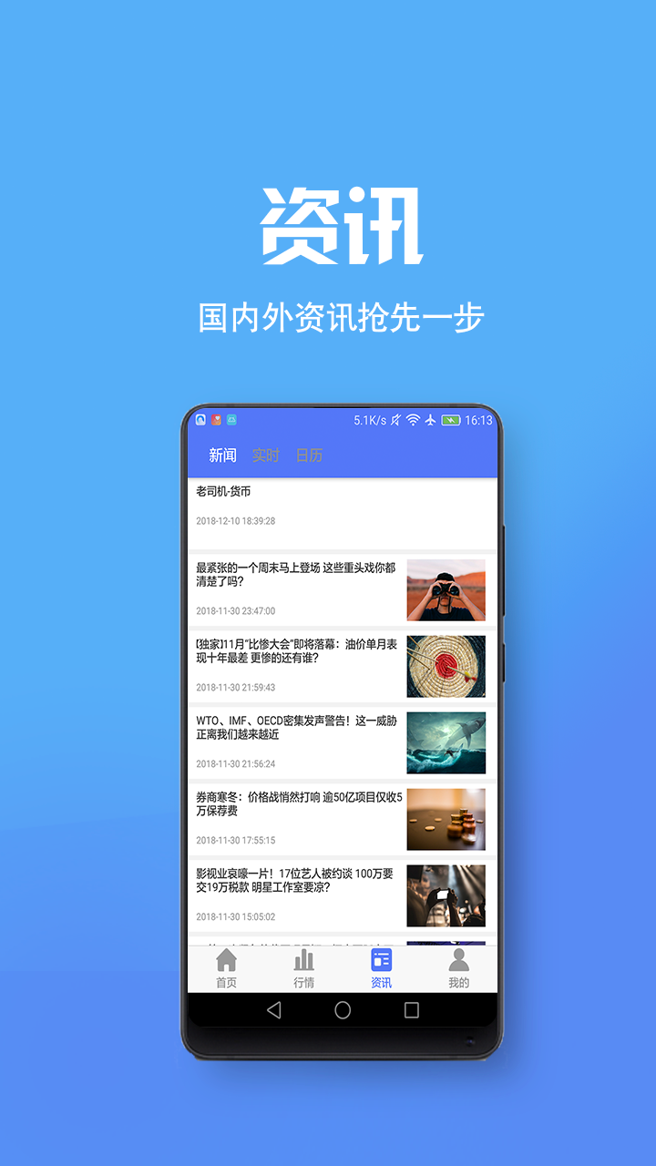 【资讯实时播报】软件,采用先进云计算,实时监控原油,贵金属,黄金,白银,外汇交易所行情走势。提供全面行情资讯,洞悉金融行业行情数据。系统会自动推送重要市场新闻和突发事件,让用户不错过任何可能影响行情的关键信息。