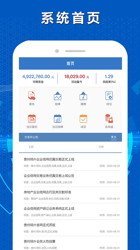 贵州场外app是一款由贵州省地方金融局官方认证的创新型金融交易平台,专注于供应链资产交易领域。该平台以核心企业为服务重心,通过先进的信用定价机制,构建公开透明的交易环境,有效解决企业融资难题。平台操作界面简洁直观,功能模块设计科学,既满足专业机构的交易需求,也便于中小企业快速上手。凭借其合规运营、技术领先的特点,已成为区域金融创新的标杆产品,为用户提供安全高效的交易体验。