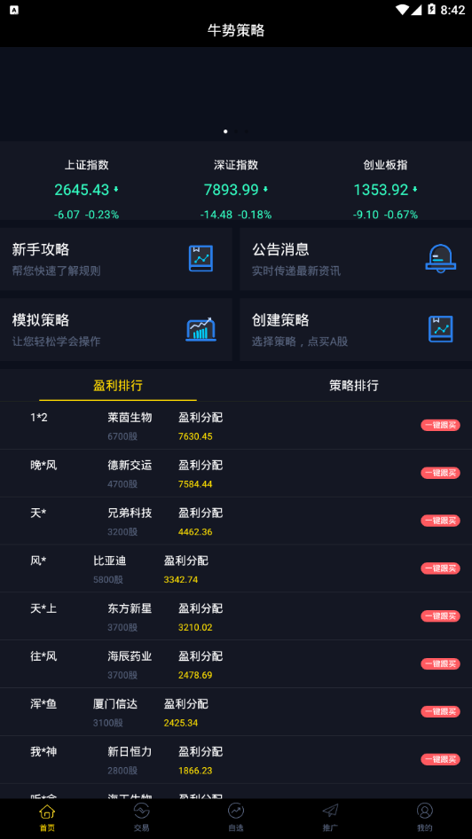牛势策略app是一款专注于股票交易的智能投资平台,致力于为用户提供安全、便捷、高效的股票策略撮合交易服务。作为一款创新的股票交易工具,它不仅延续了传统股票交易平台的低门槛特点,更通过独特的"跟随投资"模式和丰富的学习资源,帮助不同水平的投资者在股市中实现稳健收益。