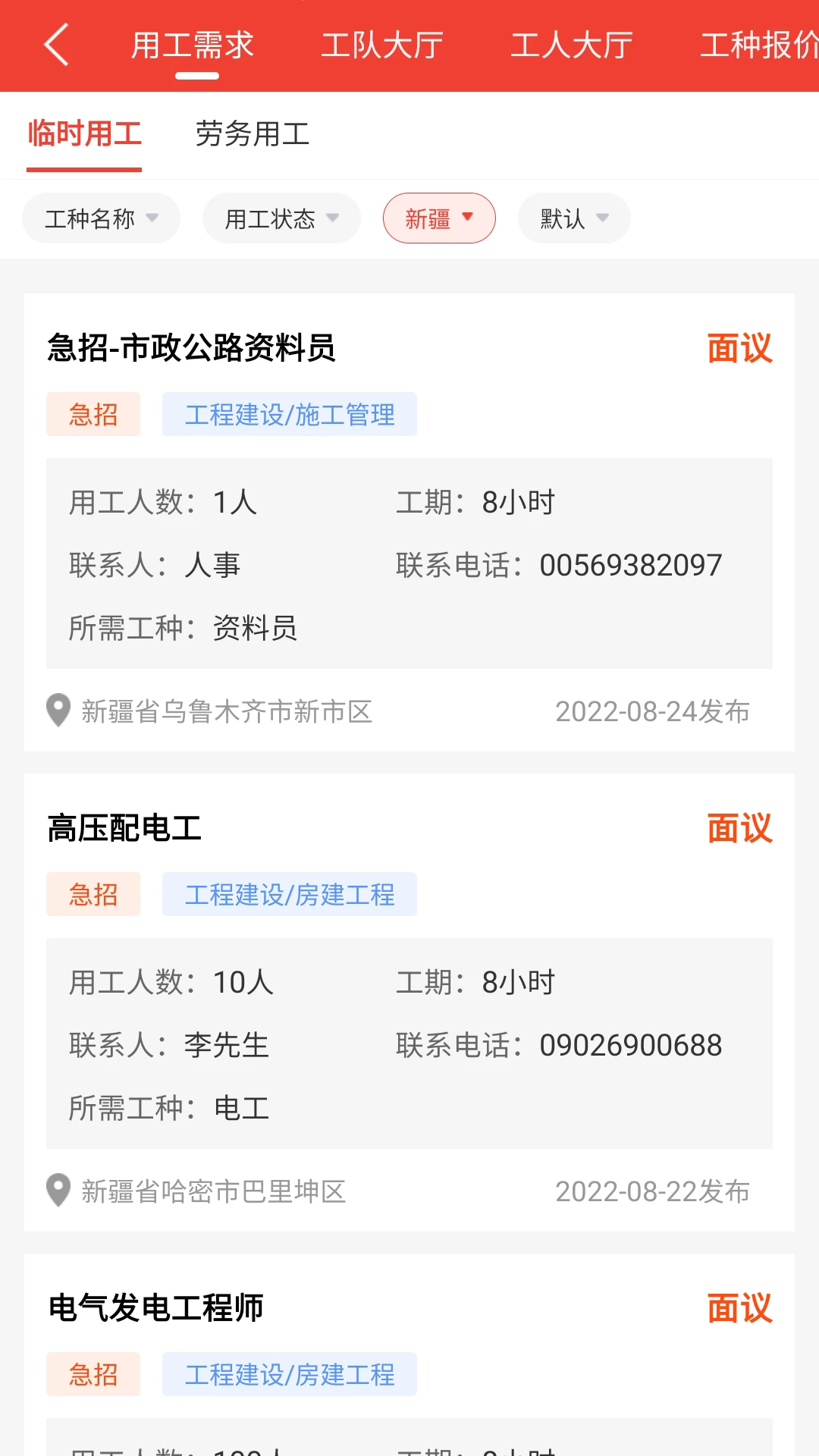 工队资源库:建立全国性工队数据库,支持按地域、工种、评级等多维度筛选