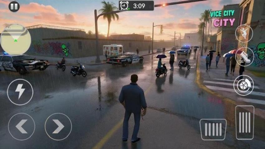 初次进入游戏时,系统会引导玩家熟悉基本操作。首先点击主界面的开始游戏按钮,你将置身于一个栩栩如生的犯罪都市。游戏地图上会标注出各类任务点,包括主线案件和随机事件,玩家可以根据自己的兴趣选择想要挑战的内容。操作方面,左侧虚拟摇杆控制角色移动,右侧区域则负责视角调整和跳跃等动作。当发现可驾驶的警车时,靠近车辆会出现交互提示,轻触按钮即可快速上车,开始你的追捕行动。