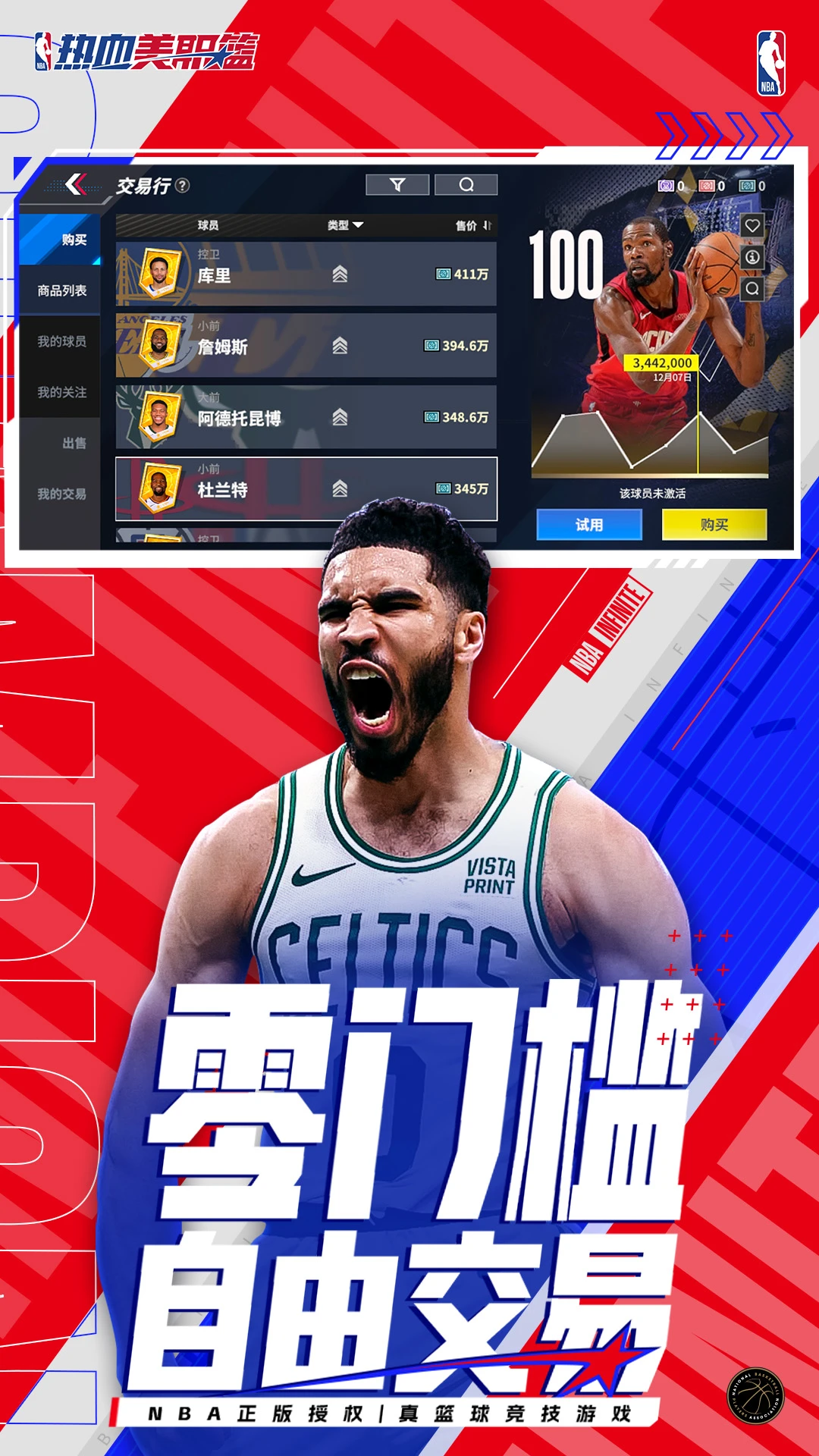 NBA官方授权:真实球队、球衣和球星,带来原汁原味的NBA体验。
