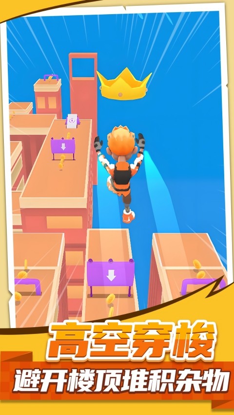 《屋顶跑酷冒险》是一款令人肾上腺素飙升的3D跑酷手游,玩家将在城市天际线的屋顶间展开惊心动魄的极限挑战。游戏采用简约直观的操作方式,通过滑动屏幕即可完成各种酷炫动作,从基础的跳跃到复杂的墙面翻转都能一气呵成。随着关卡推进,玩家需要不断收集金币和道具,同时应对越来越复杂的屋顶地形和障碍物设计。流畅的物理引擎让每个动作都充满真实感,而精心设计的关卡则能充分考验玩家的反应速度和操作精准度。无论是休闲玩家还是跑酷高手,都能在这款游戏中找到属于自己的挑战乐趣。