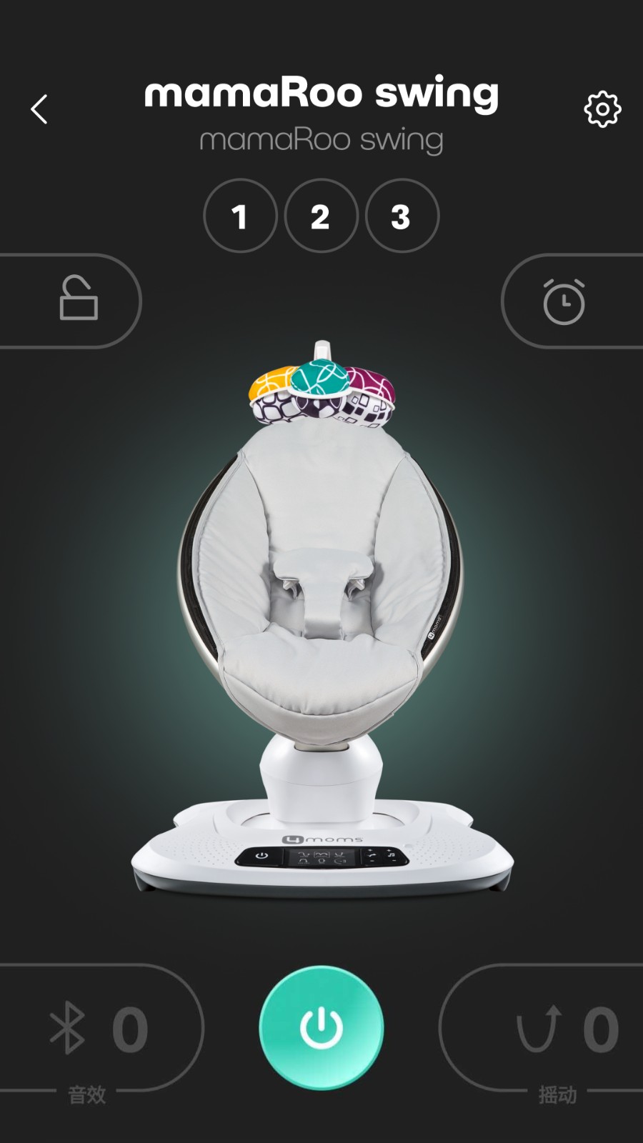 通过蓝牙技术无缝连接4moms系列产品,让您随时随地通过智能设备调整运动模式、摇摆速度和背景音乐。