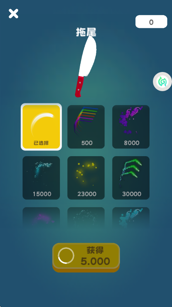 多样刀具选择解锁系统:包含多种造型与特性的刀具可供收集,每种刀具拥有独特的切割效果与视觉表现力。从经典水果刀到未来感十足的激光刀,满足不同玩家的审美偏好。部分稀有刀具还附带特殊技能,如时间减缓或自动瞄准功能。