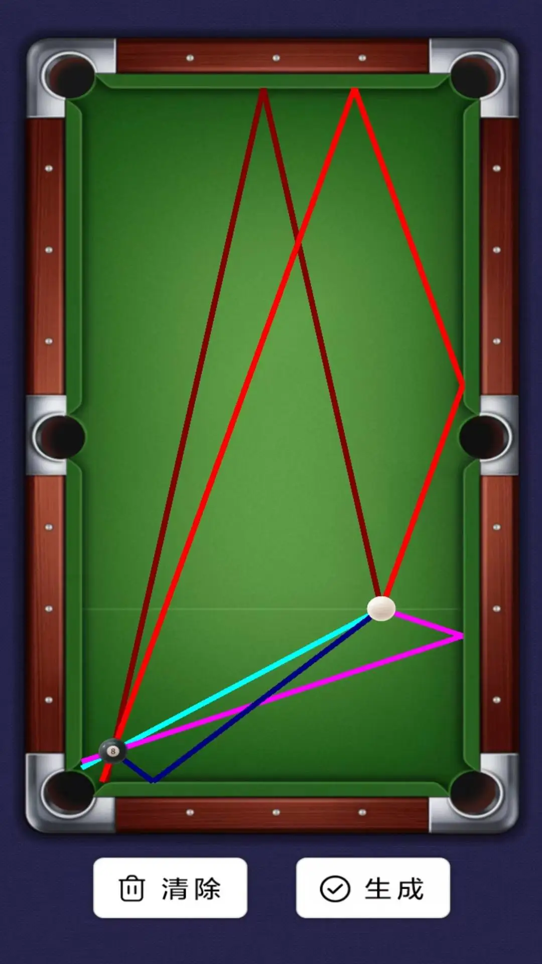 台球救星,台球爱好者的绝佳帮手!在台球桌面上,当你面临复杂球局,只需放置好黑白球,软件便能瞬间生成精准击球路线。无论球的位置多么刁钻,跟着规划好的路线击打,就能顺利解到目标球,让目标球精准落袋。它用强大算法为你攻克台球难题,让你在球桌上轻松打出漂亮击球,享受台球的无限乐趣,台球技术也能在一次次击球中稳步提升。