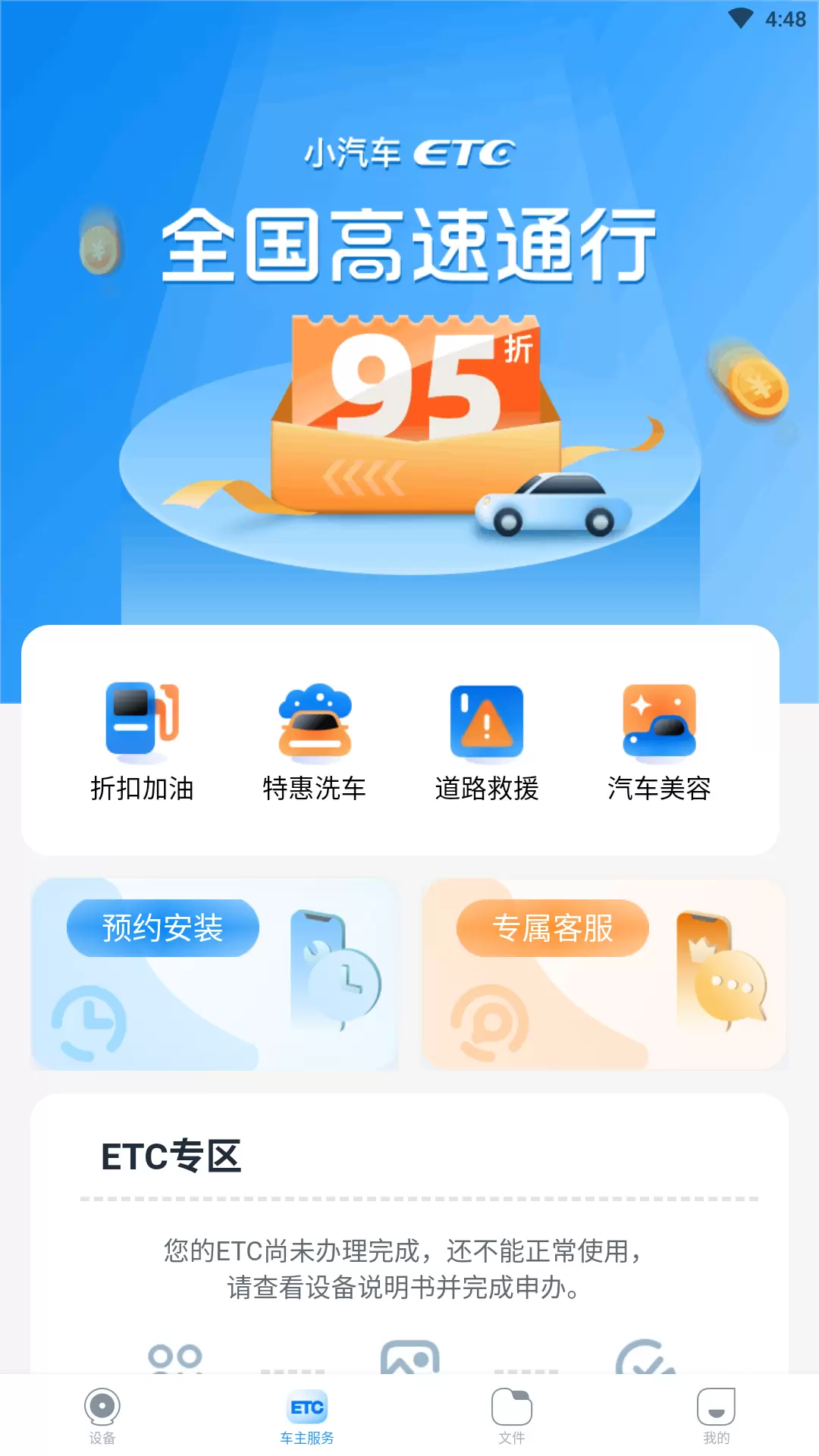 在设备页面,用户可以选择立即办理ETC或安装绑定记录仪,系统会提供图文并茂的详细指引,按照提示完成操作,即可实现设备的成功连接与使用。