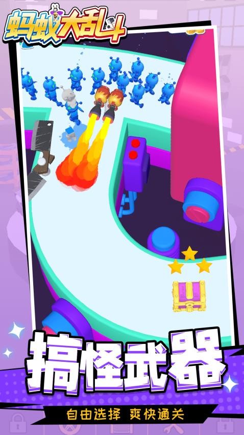 蚂蚁大乱斗是一款让人欲罢不能的魔性跑酷游戏!玩家将扮演一只小小的蚂蚁,通过不断进食来获得能量,最终变身为强大的蚂蚁超人。游戏中的跑动速度极快,配合"嗖嗖"的音效让人热血沸腾。地图设计充满创意,各种脑洞大开的障碍物层出不穷,有需要钻过的地洞、可以弹跳的弹簧,还有会突然出现的陷阱。游戏操作虽然简单,但非常考验玩家的反应能力,稍有不慎就会被陷阱淘汰。收集的金币可以用来解锁更多强力蚂蚁战士,每个角色都拥有独特的特殊技能,让游戏体验更加丰富多彩。对于喜欢快节奏跑酷游戏的玩家来说,这款游戏绝对会让你爱不释手。