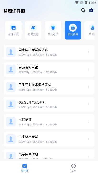 各种证书的模板和照片将在网上展示,如果您不满意,您可以重新修改。涵盖身份证、护照、签证等上百种证件规格,并定期更新最新标准。